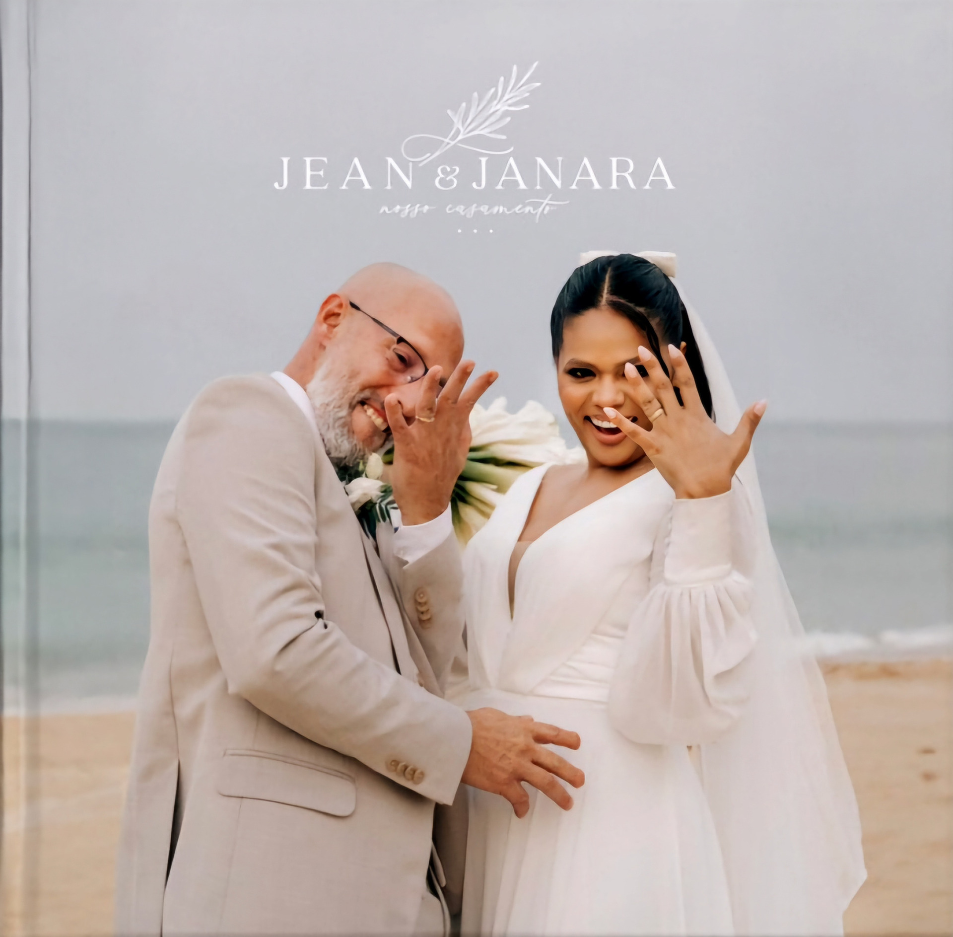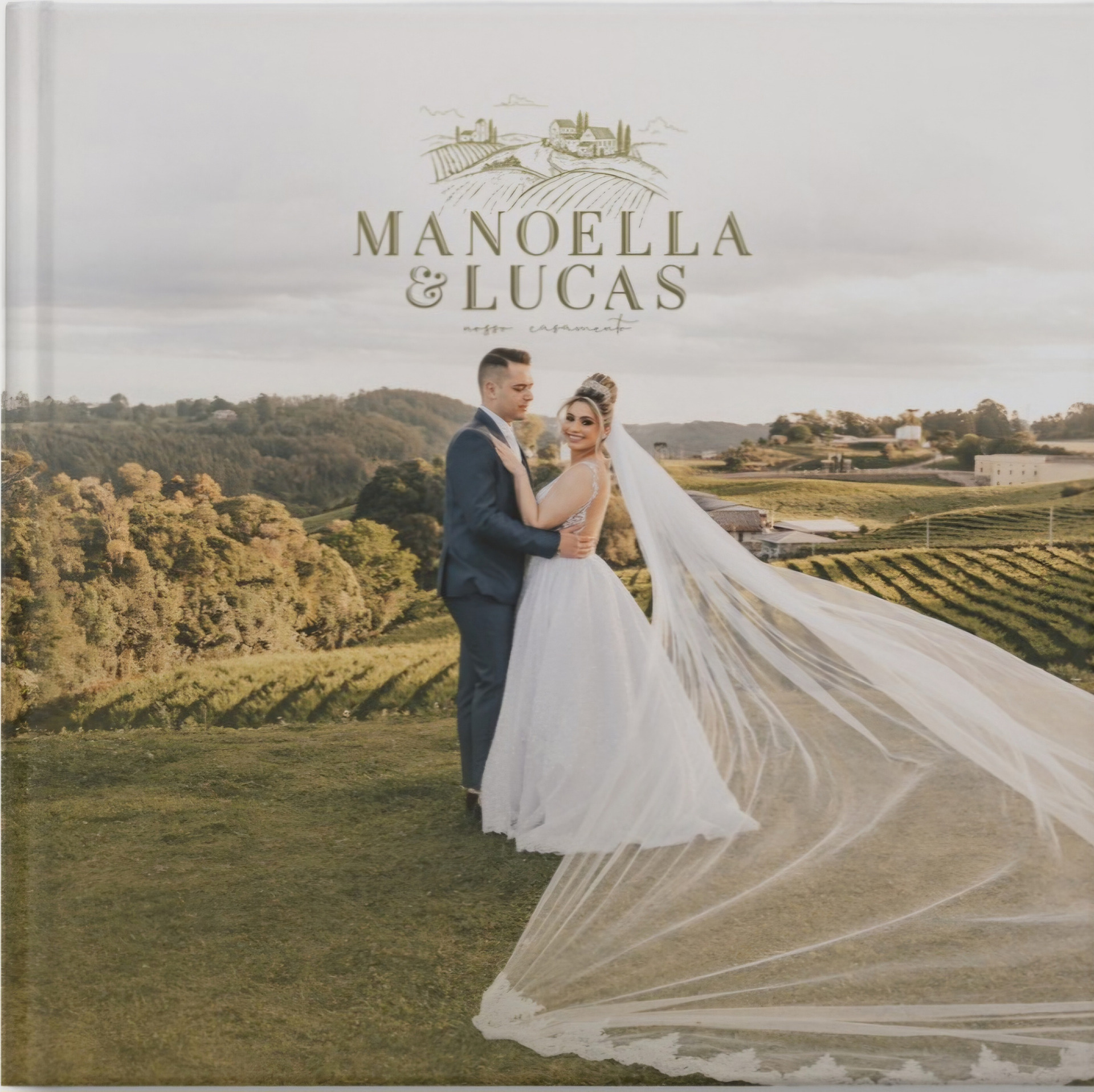 Álbum todo personalizado, com caixa em courino e caixa com gravaçao a laser